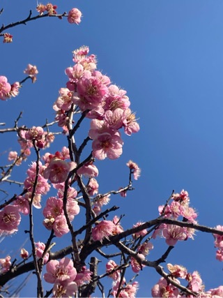 梅だよ。今日は紅梅だよ。ヘボいiPhoneのヘボいカメラだからじぇんじぇん寄れないんだよ。新しいの欲しいけど高いから我慢だよ。あともう1〜2年我慢したら最新型買っても許される気がするんだよ。