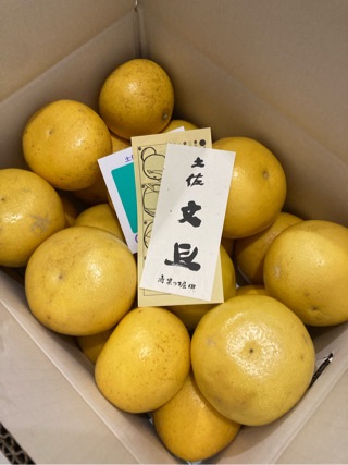 わーい文旦きたよー。でも柑橘類は胃への刺激が強いから、しばし我慢。早く胃の調子戻ってくれ〜
