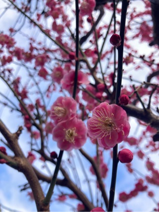 昨日の梅だよ。花びらが多いけど、八重の梅なのかな。かわいい。