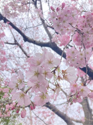 桜だよ。けっこうピンク感あるけどソメイヨシノなのかな? 咲き始めたらどんどん咲くね〜